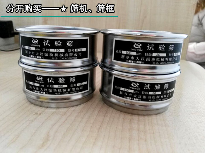 大漢機(jī)械生產(chǎn)的石墨粉試驗(yàn)篩分機(jī)可分為試驗(yàn)篩分機(jī)機(jī)和試驗(yàn)篩分機(jī)框,單臺(tái)試驗(yàn)篩分機(jī)機(jī)在3500元,一臺(tái)篩機(jī)配7個(gè)篩框,直徑有200mm、300mm兩種型號(hào),網(wǎng)目多種,具體網(wǎng)目可根據(jù)用戶需求定制,篩框的價(jià)格在100-300元/個(gè),這兩種產(chǎn)品可以分開購(gòu)買,所以這也是影響試驗(yàn)篩分機(jī)價(jià)格的大因素。